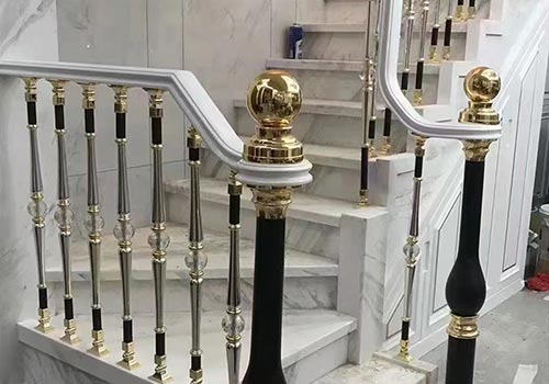 此樓梯扶手和室內整體風格相統一,首先固定頂部和底部的柱子,然后在兩根柱子之間的頂部拉一條直線,手感好,現代感好,易于清潔,最重要的是不生銹,使用壽命長等特點廣受歡迎。