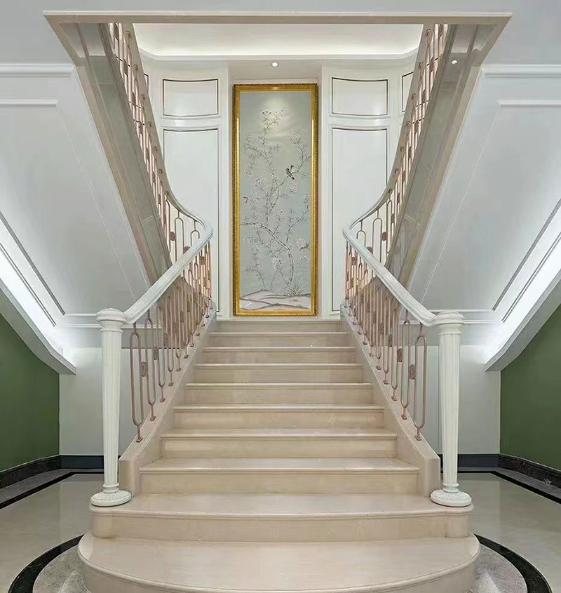 從一樓開始,整個樓梯一圈一圈地向上,不占用更多的空間,也保持了空間的感。L型樓梯轉(zhuǎn)角位置,安裝小展臺,擺放精美的小飾品,也讓空間顯得格外文藝高級。